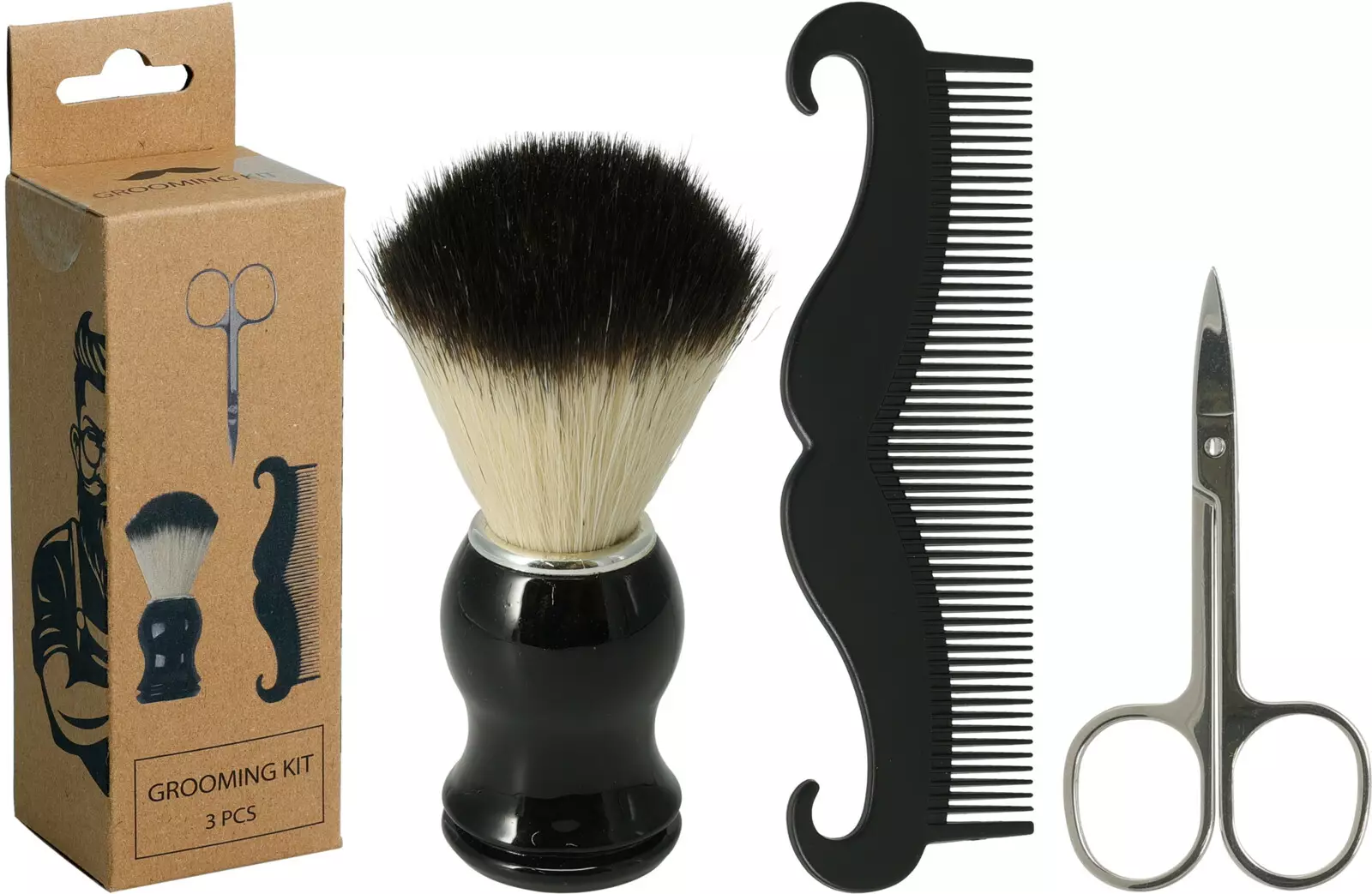 setet innehåller saxar, skäggborste och kam för skäggvård- utmärkt presentidé till mannen, pappan, farfar osv.