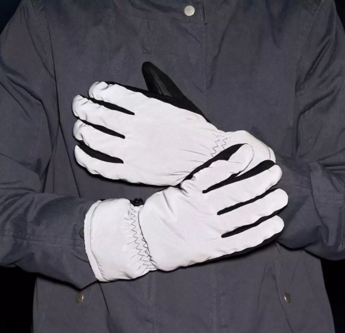 Stilrena reflexhandskar. Ser ut som vanliga svarta handskar på dagen, men fungerar som reflexhandskar i mörker. Ovanmaterial i reflexmaterial. Mjuk och varm foder. Förstärkt handflata som ger bra grepp. Produkten är inte personlig skyddsutrustning. Använd alltid CE-märkt reflex och reflexväst i mörker. Maskintvätt 40 grader. Material: yttertyg 100 % polyester, foder 100 % polyester, stoppning 100 % polyester, handflata 100 % polyuretan.