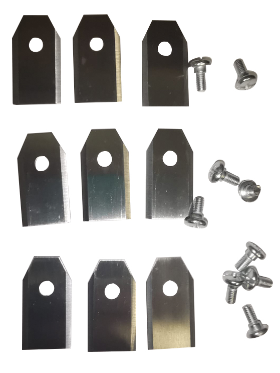 Ståldelssats för robotgräsklippare- 9 delar- 36x18 mm- tjocklek 1 mm- passar: Dynaplus- inklusive skruvar (Bilden är endast en referens, korrekt blad kan avvika från bilden.)