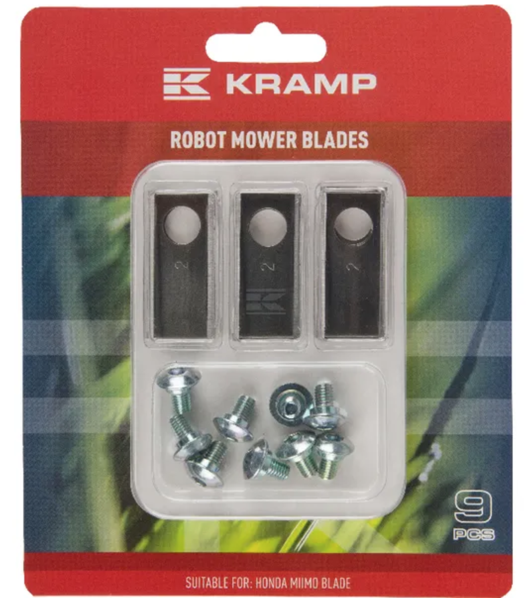 Reservdelskär för Honda Miimo robotgräsklippare. Knivbladets storlek: 39x17,5x0,5 mm. Räcker till tre byten. Inklusive skruvar för knivarna. Passar: Honda MIIMO 300 MIIMO 310 MIIMO 500 MIIMO 520... Läs mer