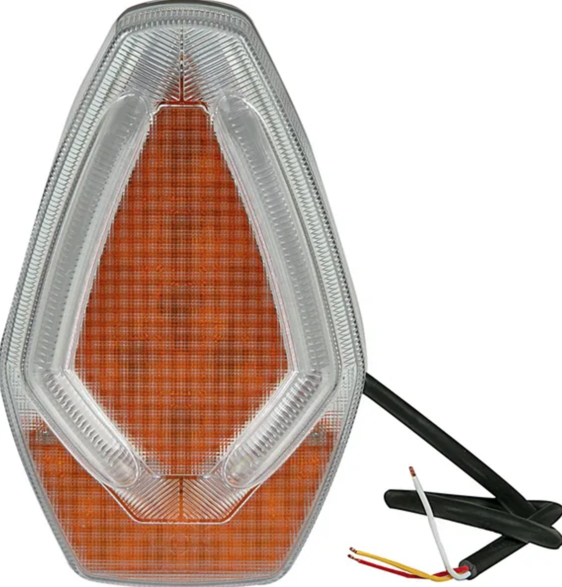 - nominell spänning 12 V - lampteknik: LED - form: triangulär - funktion: blinkers, positionstal - bredd: 167,3 mm - höjd: 105,8 mm - längd (djup): 34,1 mm - fästtyp: bult - kabelns längd 0,5 m - ECE-standard R10 - skyddsklass (IP): 67