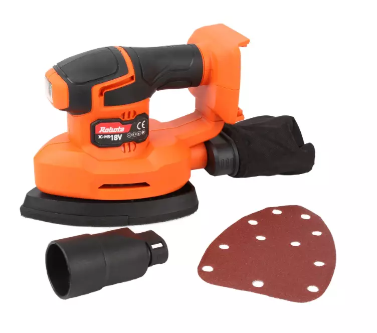 Robota batterislipmaskin utan batteri När det finns mycket att slipa och förlängningssladden alltid är i vägen, gör Robota batterislipmaskin jobbet enkelt och flexibelt. Den lätta och greppvänliga designen gör den enkel att ta med till verkstaden, stugan eller byggarbetsplatsen. Passar för trä, målad yta och lätt metallslipning – ett utmärkt val för både hemmafixaren och den professionella som värdesätter rörlighet. Tekniska specifikationer — Robota batterislipmaskin utan batteri Spänning: 18 V (batteri ingår ej) Slipyta: 140x96,6 mm Vibrationsdämpning: Integrerad vibrationsdämpning för bättre användarkomfort Dammutsug: Avtagbar dammuppsamlare + anslutning för dammsugare Vikt: Cirka 1,2 kg (utan batteri) Kompatibilitet: Robota 18V och Makita LXT 18V batterier Design: Ergonomisk form, vadderat handtag Leverans: Endast maskinkropp – batteri och laddare säljs separat