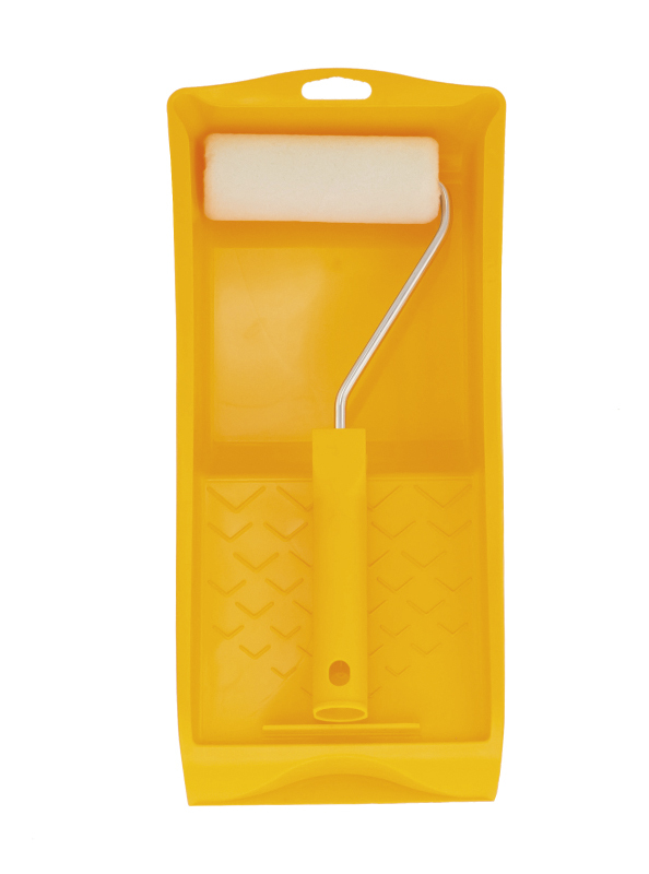 för alla inomhusfärger och lacker, släta ytor - mycket slät yta - setet innehåller: -- midiviskostroll 100mm -- handtag 290mm -- färgskål