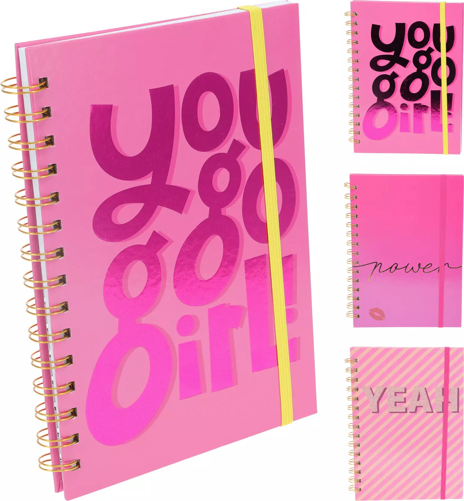 Rosa anteckningsbok med gummiband - storlek: A4 - finns i olika teman (som på bilden), och du får slumpmässigt ett tema beroende på lagersituationen (blandat sortiment)