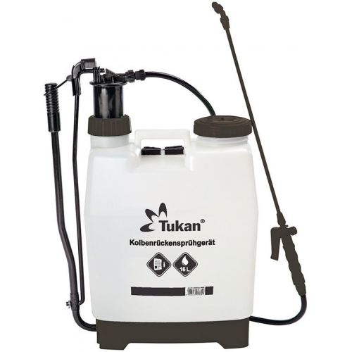 Ergonomisk ryggradspruta med stor behållare för landskapsarkitekter, tjänsteleverantörer och trädgårdsprofiler.- stor påfyllningöppning.- behållarvolym 16 liter- Gloria Tukan 16L ryggradspruta är särskilt lämplig för sprutning av stora ytor- tack vare pumpsystemet och den stora behållaren kan sprutan användas längre tid i ett sträck- pumpsystem: manuell- pumptyp: kolv- justerbar munstycke- slanglängd 120 cm- vikt 3,6 kg- total längd på sprutslangen 560 mm