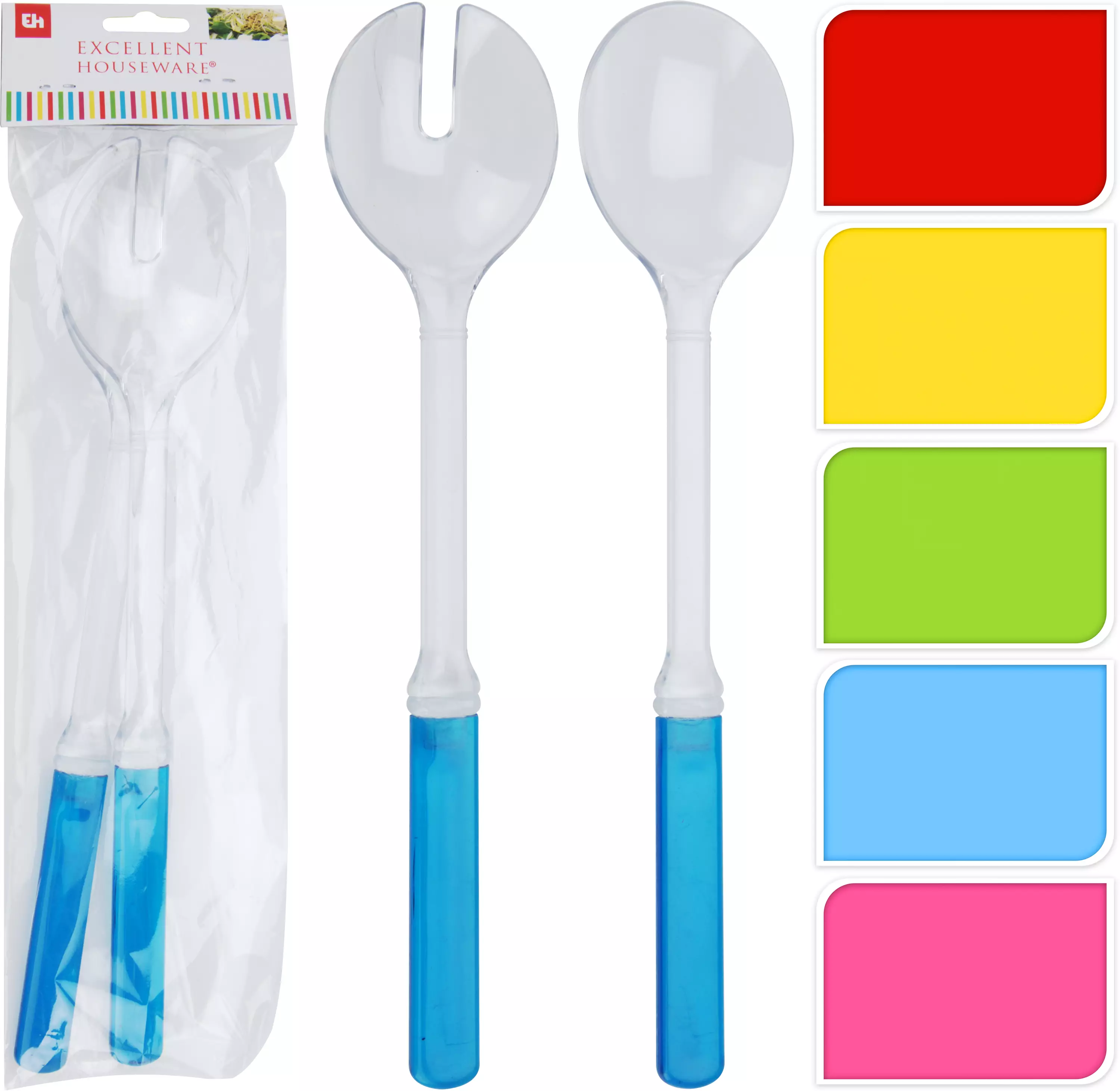 Salladsbestick av genomskinlig plast - klart färgad handtag