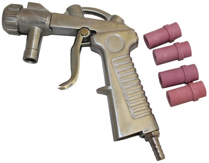 inkluderar 4 keramiska munstycken 4, 5, 6 och 7 mm - aluminiumram - arbetstryck 0 - 5,5 bar - max tryck 7 bar - luftförbrukning 198 l/min Kan användas i sandblästringskåp eller separat!... Läs mer