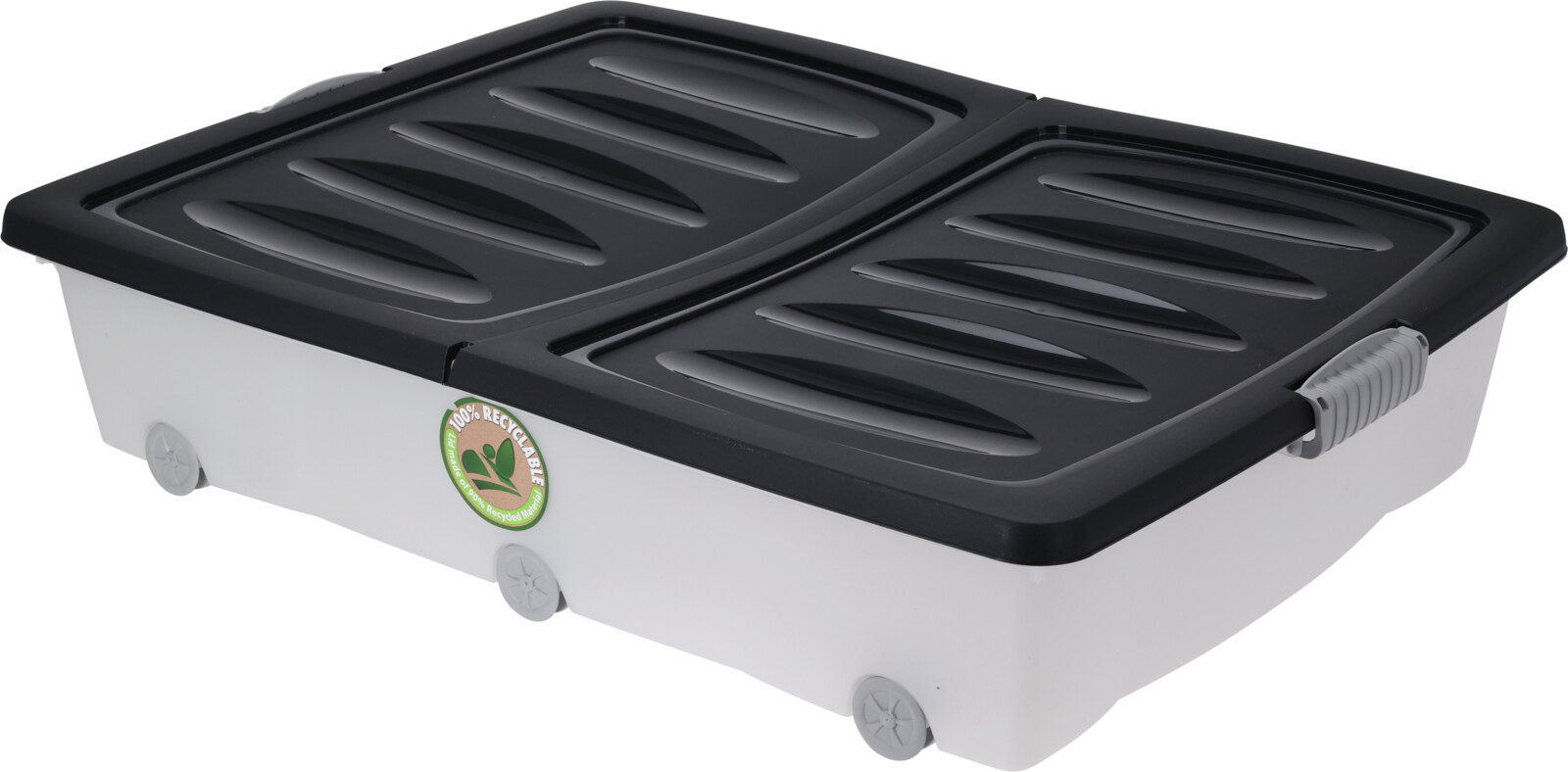 Multibox sängynaluslåda med hjul - storlek 80x60x17 cm - antracitgrå lock - material: återvunnen plast - vikt cirka 1,6 kg