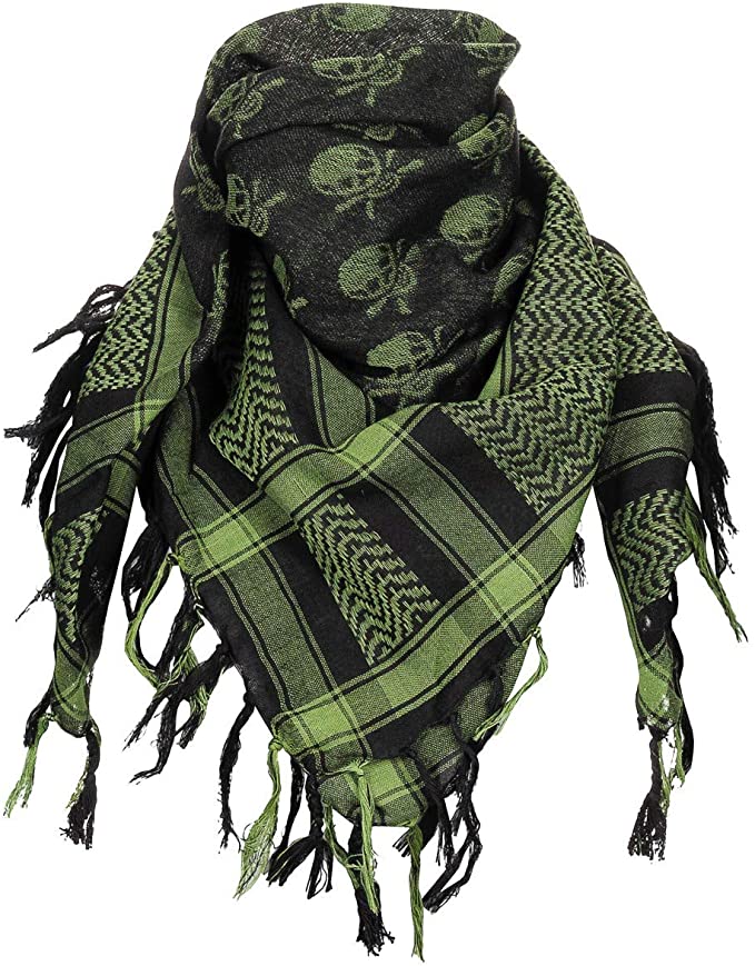 Traditionell arabisk halsduk som länge har använts i bland annat USA:s och Storbritanniens väpnade styrkor - denna modell har ett döskallemönster - tunn och behaglig 100 % bomull - mått 100 x 100 cm - mångsidig, skyddar både mot kyla och värme