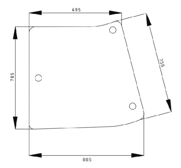 Vänster sidofönster för traktorer. - dimensioner: se bild - tjocklek: 6 mm - motsvarar del: John Deere R201574 Passar följande John Deere-modeller: - 5055E - 5065E - 5070M - 5075E - 5075M - 5080M - 5080R - 5080RN - 5085E - 5085M - 5090M - 5090R - 5090RN - 5095E - 5100M - 5100R - 5100RN - 5115M - 5115R - 5125R - 5220 - 5320 - 5420 - 5520 - 5620 - 5720 - 5820 - 6090MC - 6095MC - 6100MC - 6105MC - 6110MC - 6115MC - 6090RC - 6095RC - 6100RC - 6105RC - 6110RC - 6115RC