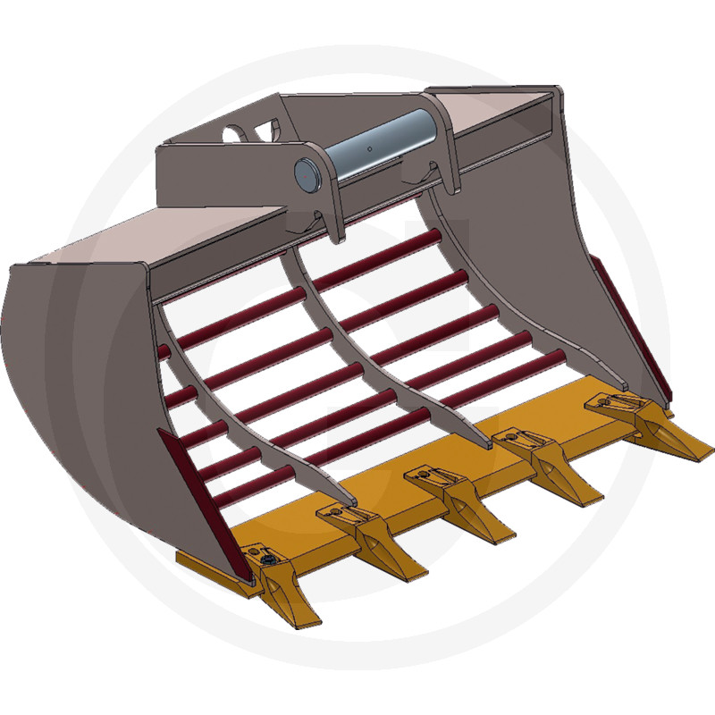 Siktbalk 3,8-5,5 tonnars grävmaskin med Lehnhoff MS03-fäste. Siktöppning är cirka 65 mm, rör är tillverkade av HARDOX 400. Balkarna har ett blad på 150 x 16 mm (hårdhet HB500). CAT J200-klo.