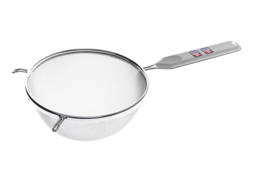 Diameter 16 cm. Handtaget har en längd på 16 cm. Metall.