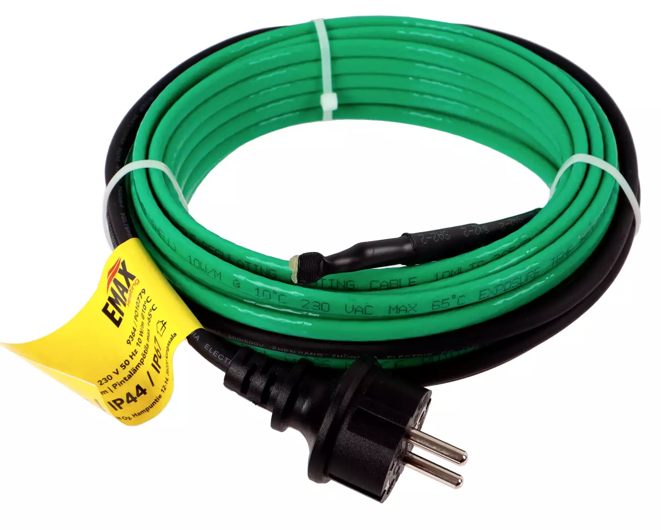 - Effektiv självgenererande värmare för vattenledningssystem som kallvatten, rännor och dagvattensystem. - Kabelns effekt 10W/m @ 10°C. - Anslutningskabelns längd 2m. - Maximal temperatur +65°C. - VDE-kontakt. - Yttermaterial i Teflon (Fluorpolymer), godkänt för användning inuti kallvattenledning. - IP44-skydd. Tekniska specifikationer: - Ingångsspänning 230 V 50 Hz - Nominell utgångseffekt 10 W/m @ 10 °C - Kapslingsklass IP44/67 - Yttermasktemperatur max +65 °C - Högsta underhållstemperatur eller temperatur för kontinuerlig exponering (ström på/av) +65 °C - Högsta temperatur vid intermittierend exponering (ström på/av) +85 °C - Lägsta tillåtna installations temperatur -25 °C - Minsta böjningsradie 25 mm - Vikt 0,96 kg
