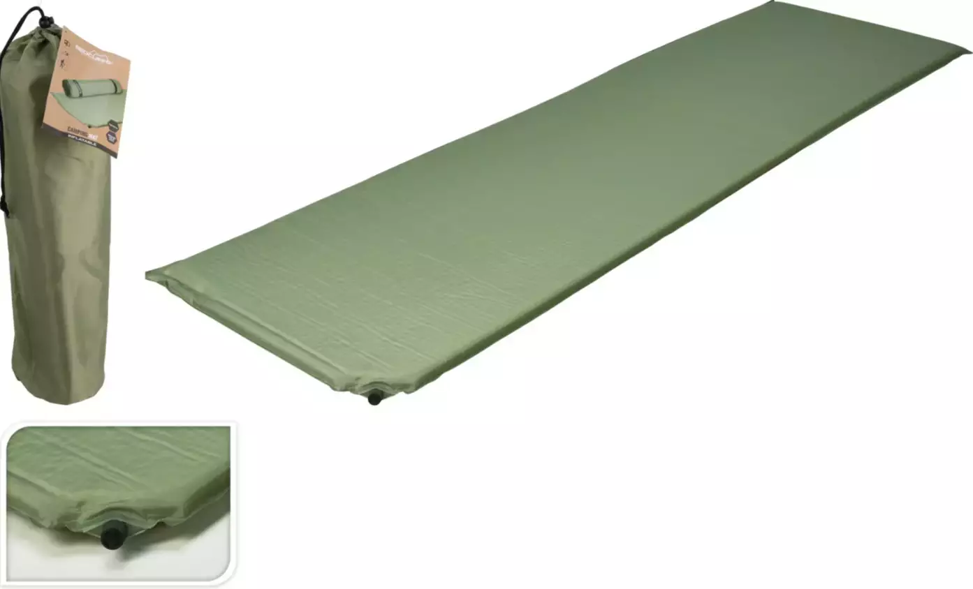 Självuppblåsbar liggunderlag - förpackad i en förvaringspåse, storlek ca 50 x 13 cm - vikt 905 g - mått utviken 183 x 51 x 2,5 cm