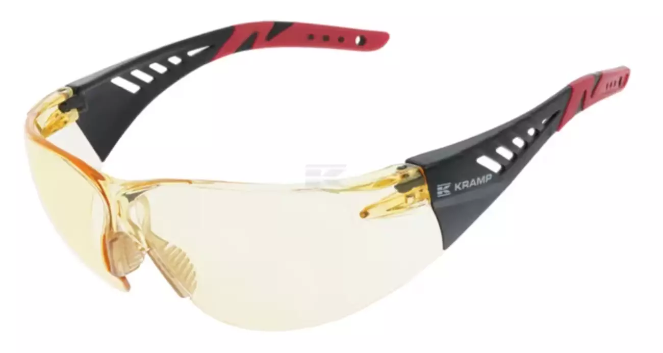 Krampskyddsglasögon är utvecklade för att skydda ögonen i alla arbetsförhållanden. Lätta och hållbara glasögon kan användas i en mängd olika arbetsuppgifter. Alla modeller är certifierade enligt de senaste EN ISO-standarderna. - Båglösa skyddsglasögon - Svarta/röda temporala delar, klar lins och repfria/dimmfria beläggning - Flexibel näsbrygga för en bekväm passform - Gummiändar på de temporala delarna ger utmärkt grepp - Dielektrisk, icke-ledande ram - Uppfyller Kanadas CSA Z94.3 krav - 9,75 bas kurvas lins - Linsmaterial: Polykarbonat - Linsfärg: Gul - Linsbeläggning: UV400-filterlager - Rammaterial: Nylon - Ramfärg: Svart - Antireflexglas: Ja - Repbeständig: Ja - Dimmfri: Ja - EN-standard 166