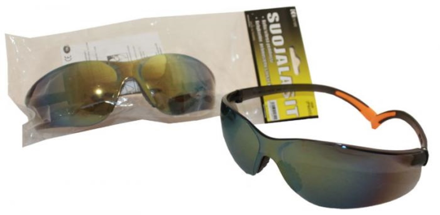 Skyddsglasögon med spegelglas - Gul/grön spegel lins - Ramfri, vadderad skaftspets - EN166