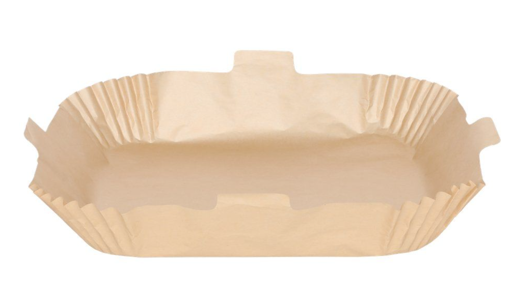 Den upphöjda kanten (diameter 25 cm upptill, 20 cm nertill) skyddar sidorna av fritösen. Den upphöjda handtaget gör det lättare att lyfta. Skyddspapperet skyddar apparaten och minskar behovet av rengöring efter användning. Fungerar även i ugn, stekpanna eller mikrovågsugn. Passar för air fryers med kapacitet 3-6 liter. Placera skyddspapperet noggrant på apparaten botten. Lägg maten jämnt ovanpå skyddspapperet. Se till att luftflödet inte lyfter papperet så att det kommer i kontakt med de heta elementen. Använd aldrig skyddspapperet vid högre temperaturer än vad som anges på förpackningen. Bredd27 cm Djup7 cm Höjd29 cm Vikt0,23 kg Färgbrun Materialsilikonpapper