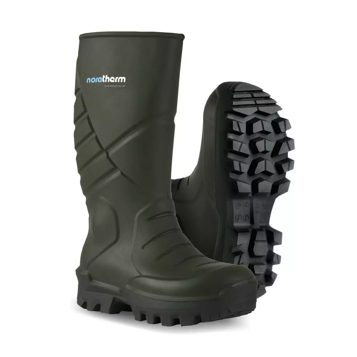 Mycket bred och bekväm spets av stål, anatomiskt formad läst och ergonomiskt utformad ovandel, utbytbar innersula, självrengörande och smutsavvisande yttersula, antibakteriell foder, mycket greppvänlig yttersula, SRC-klassning, flexibel i kalla temperaturer ner till -50 °C, motstår bensin, oljor, animaliska oljor och fetter, baser, kemikalier, syror och rengöringsmedel. * Ståltåhättor * Stålkapslar i sulorna * Isolerad mot kylan * Antistatiska * Oljetålig yta * Halkfri SR-yttersula * Färg: grön * Certifierad enligt den nuvarande standarden UE EN ISO 20345:2022 * STANDARDER FÖR SKYDDSKOR OCH KALOSHER: EN ISO 20345: Skyddsskor enligt standarden EN ISO 20345, med tåskydd för höga laster där skyddseffekten testas med 200 joules energi. * KATEGORIER FÖR SKYDDSKOR: S5, klass II: Antistatiska egenskaper, energidämpning vid hälen. Genomträngningsmotstånd. Profilert yttersula.