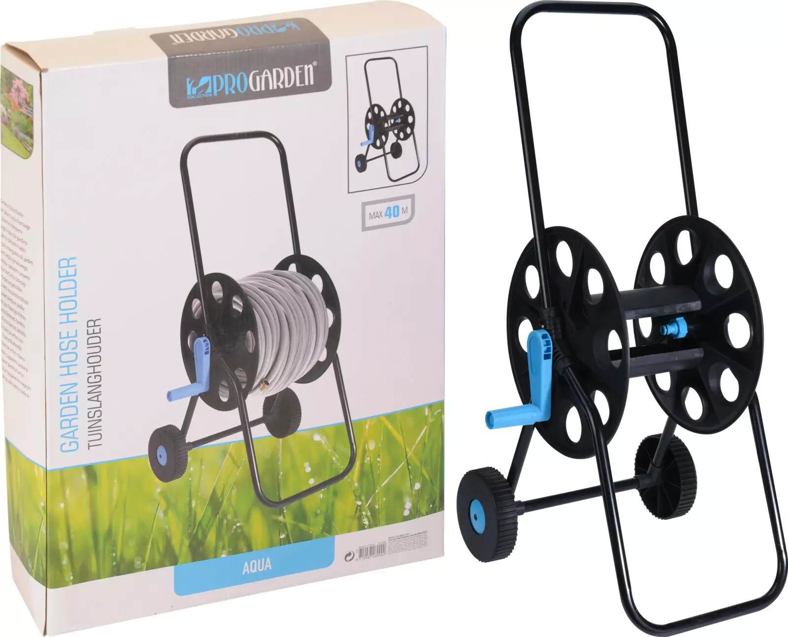 - lätt hopfällbar vagn för trädgårdsslang / vattenslang - underlättar hantering och förvaring av slanguppvridaren - tom vagn, innehåller ingen slang - passar slangar med en diameter på upp till 1/2 tum (max 40 meter) - material: Metall och polypropen - mått: Längd 35,5 cm, bredd 10 cm, höjd 49 cm - vikt: 2,26 kg