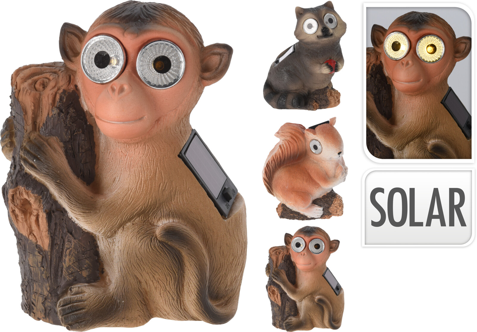 - mått: 14,5 x 7 x 20 cm - finns i 3 olika djurteman (se bild) varav du får en slumpmässigt vald vid beställning (sortimentsprodukt) - material: polyresin - Djurets ögon har solcellsdrivna lampor, vars batteri laddas med solljus och tänds och släcks beroende på ljusstyrkan.