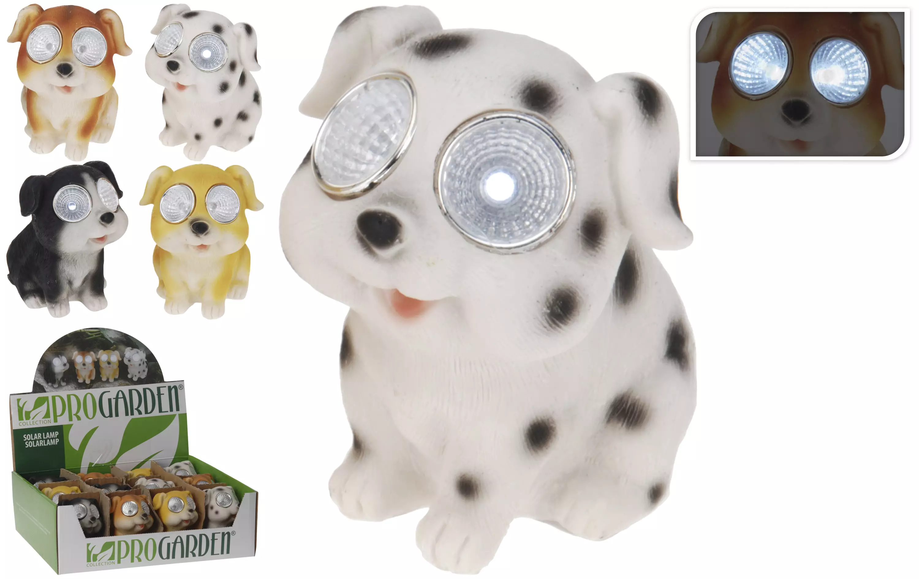liten hund trädgårdsskulptur med solcell - mått: 7x7x10 cm - vikt: 155 g - ögonen tänds och släcks automatiskt när det blir mörkt, solcellen laddar batteriet med solens energi, ljuset släcks... Läs mer