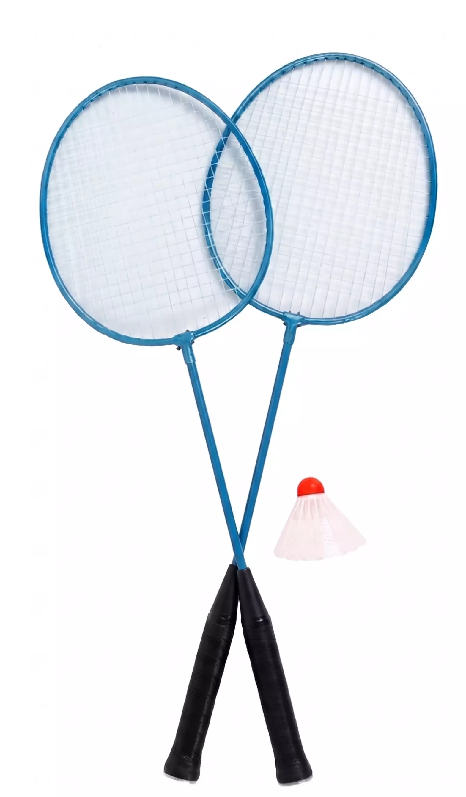 Badmintonset för barn och utomhusspel. Innehåller två badmintonracket med metallram och en plastbadmintonboll. - 40 × 210 × 700 cm - 0,2 kg