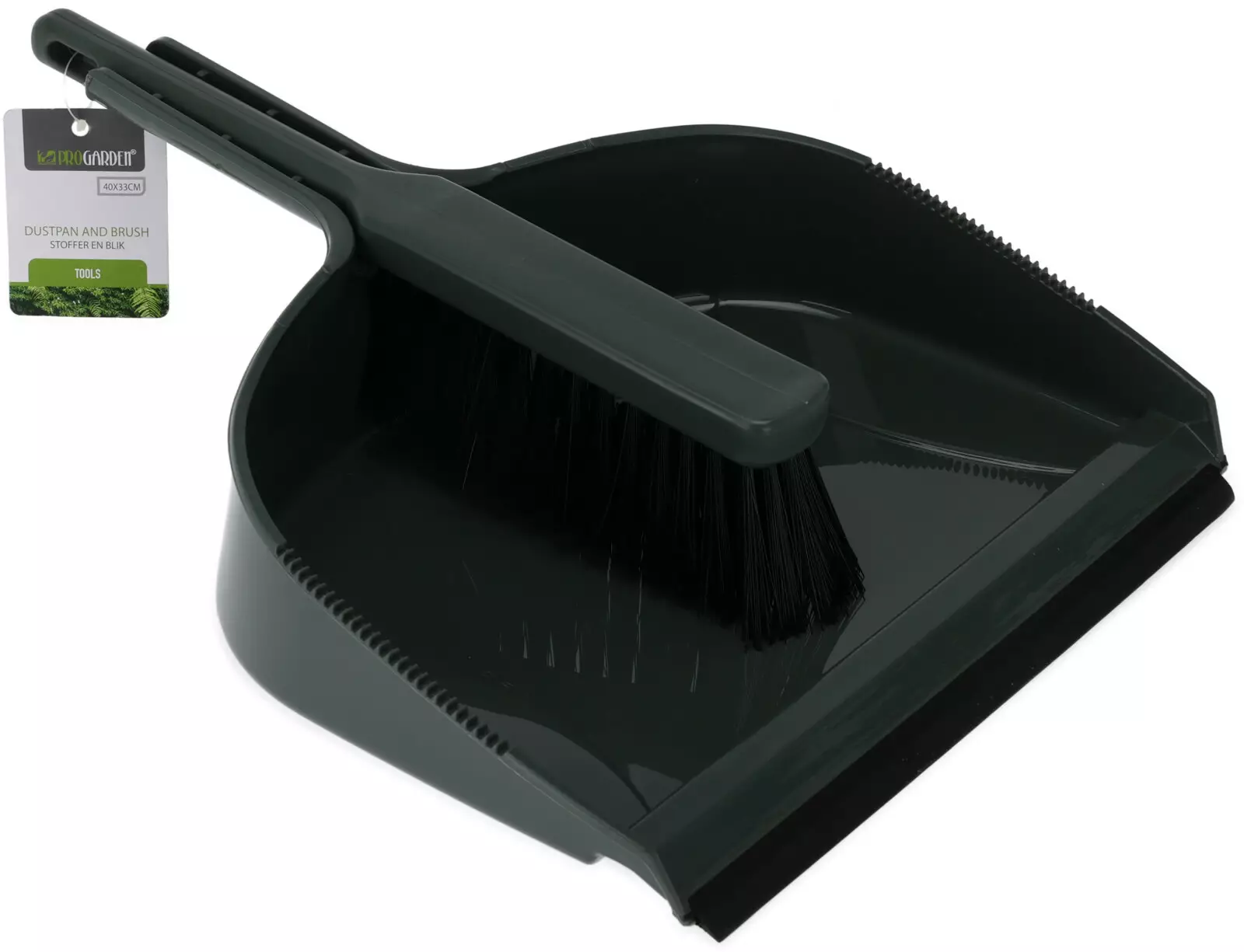 mörkgrön plast sopskyffel och sopborste - mått: 40x33 cm