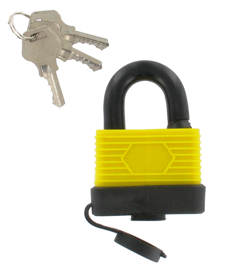 Sprutsäker 40 mm hänglås med reptålig plastbeläggning på kroppen och haspen. Nyckelhålet skyddas av en avtagbar gummipropp. Inkluderar 3 nycklar. Fryser inte och oxiderar inte lika lätt som vanliga hänglås. Passar för båtar, stugor, förråd, cyklar, mopeder och motorcyklar samt andra fuktutdragna platser.