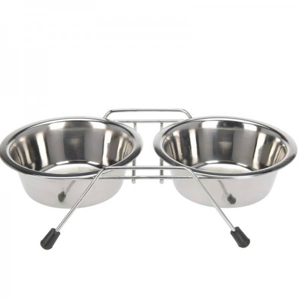 mat- / dryckeskålar för katt, liten hund och andra husdjur - inkluderar 2 stålskålar (diameter 11,5 cm) och en hållare