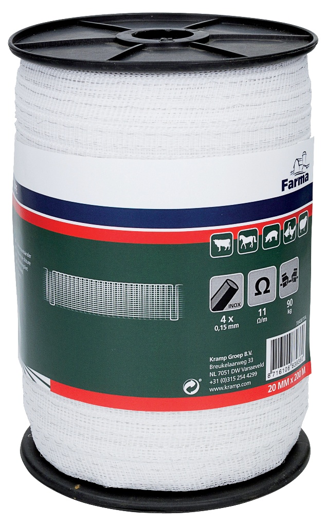 Inhägnadslina Top Line Plus 20 mm/200 m vit/röd
