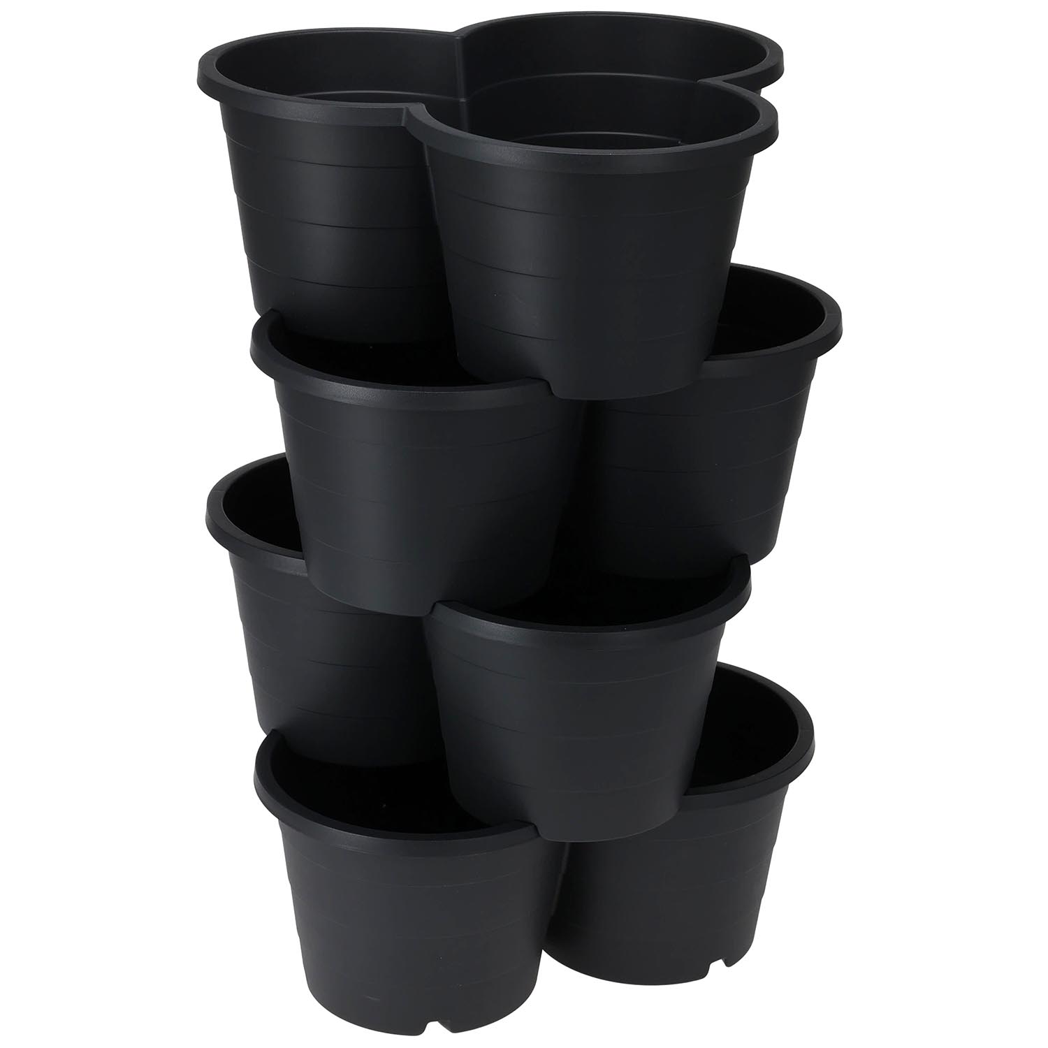 En praktisk och dekorativ 4-delad odlingskruka som är perfekt för t.ex. odling av tomater och potatis samt sommarblommor. - Plastkrukorna kan ställas på varandra i en tornformation, vilket gör att de tar liten plats men rymmer många växter. - När växten växer blir kruktornet en mycket imponerande gröna inslag. - Förpackningen innehåller en 4-delad krukuppsättning. - Mått för den staplade tornet: 42x40x65 cm. - Vid förvaring passar krukorna inuti varandra. - Materialet är hållbar svart plast.