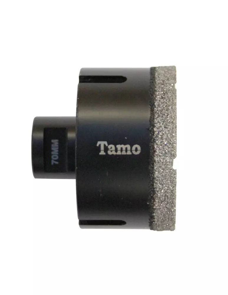 Diamantborrkronan är avsedd för torrborrning i hårda stenar. Borren har ett högkvalitativt, långvarigt belagt diamantpulver som möjliggör en ren och snabb borrning. Perfekt för kakel, granit, pressplattor och naturstenar som marmor. Den interna kylvaxet minskar friktion och förlänger livslängden. M14-fästet passar stora vinkelslipar och borrmaskinsfäste kan även göras med Tamo M14–HEX-adapter.
