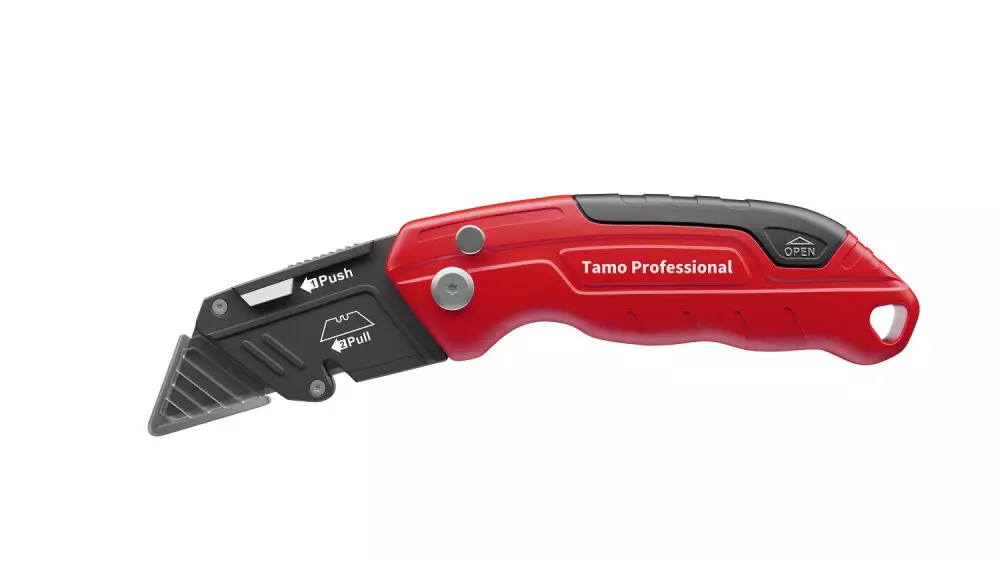 Tamo fällkniv erbjuder bekvämlighet och mångsidighet i arbetet. Den kompakta storleken (158x40mm) och den hållbara aluminiumkonstruktionen gör den till ett pålitligt verktyg. Förpackningen innehåller fyra svarta blad, och förvaringsfodralet möjliggör en smidig transport av tre extra blad. Kniven öppnas med en hand, och bladen kan låsas i tre olika lägen. En praktisk skärkanal på skyddet gör det enkelt att klippa tunnare snören. Den tunna designen gör att kniven är lätt att bära i fickan. Dessutom ingår ett bältefäste som gör det ännu enklare att ha med sig fällkniven. Vikt 200 g