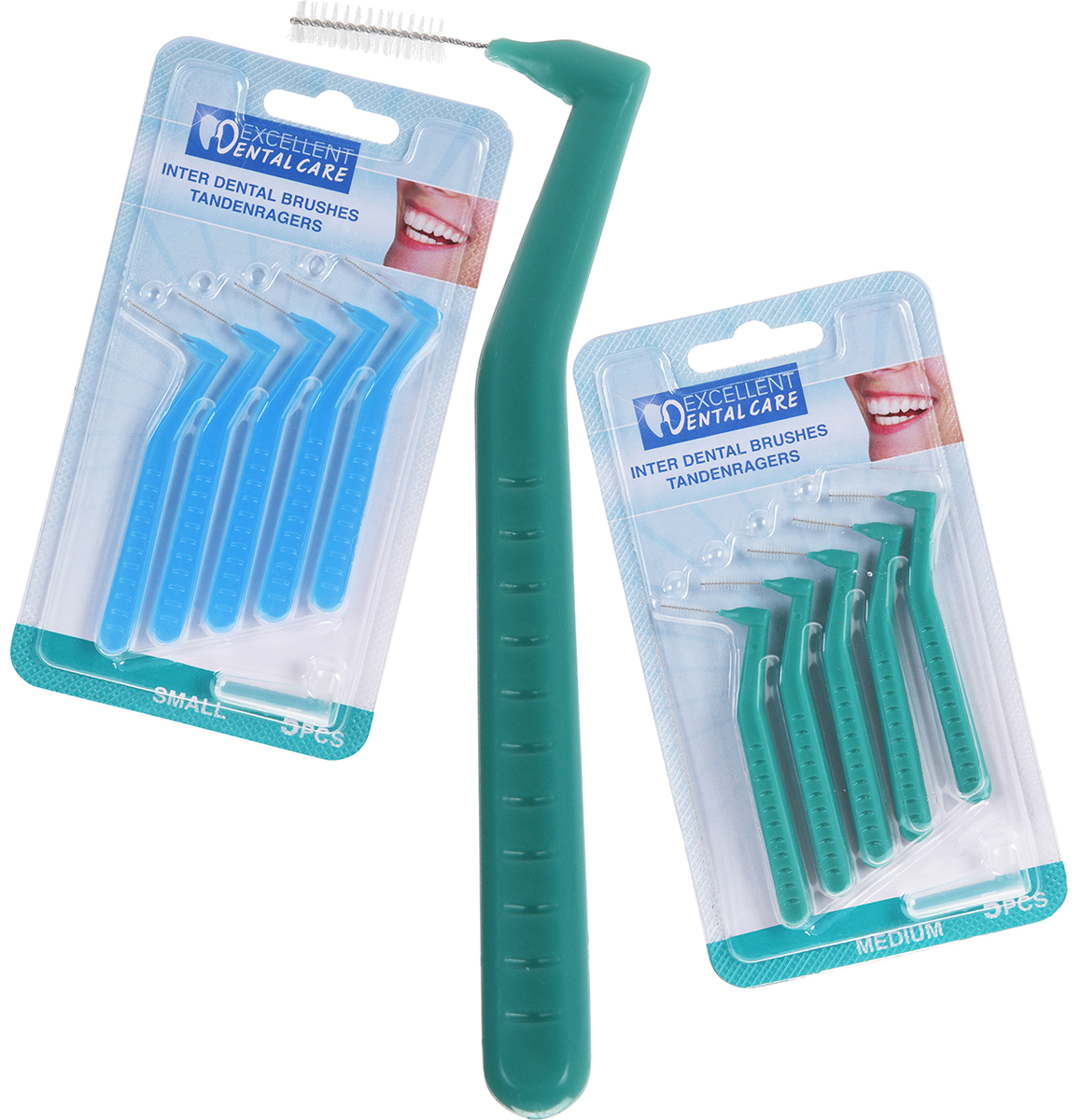 för rengöring av mellanrummen mellan tänderna - 5 st / förpackning Finns i 2 storlekar: * S-storlek (blå) * M-storlek (grön)