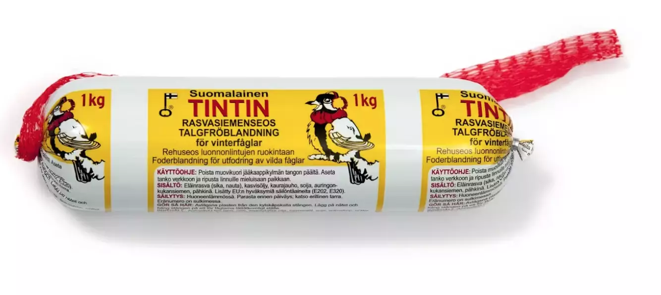 ?Äkta och ursprunglig finsk Tintti! - Generöst stor fettfröblandning för vintermatning av fåglar. - Energirik fettfröblandning med traditionellt upphängningsnät. - Innehåller animaliskt fett, havre, soja, solrosfrön och nötter. - Fettinnehåll över 60%. - Värmebehandlad. - Förpackningsstorlek: 1 kg.