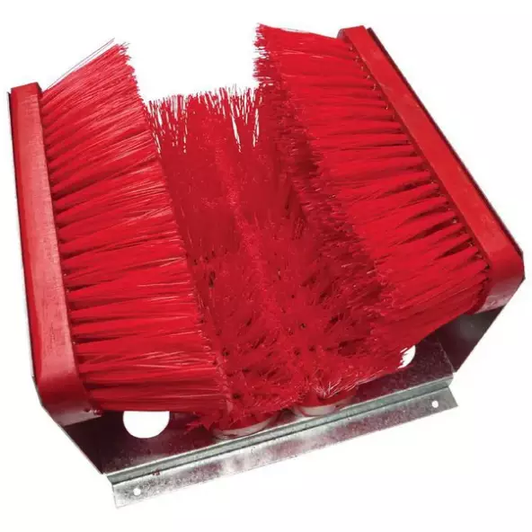 Stabil trappstädare / rengöringsställ för stövlar och skor med galler - galvaniserat järn och PVC - mått: 480 x 32 x 75 mm - borstfärg: röd