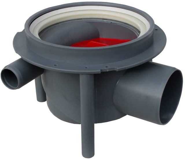 STF-godkänd golvbrunn med två sidouttag på 32 mm.