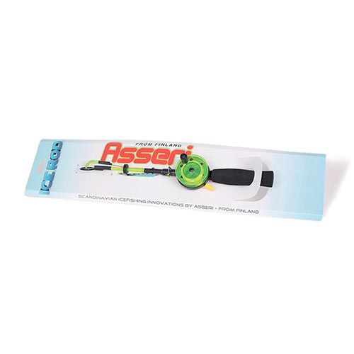 50 mm spole - EVA-handtag - Fluorid Grön plastspets - 50 mm Väinö Kuosto vertikalfiskespö ingår.