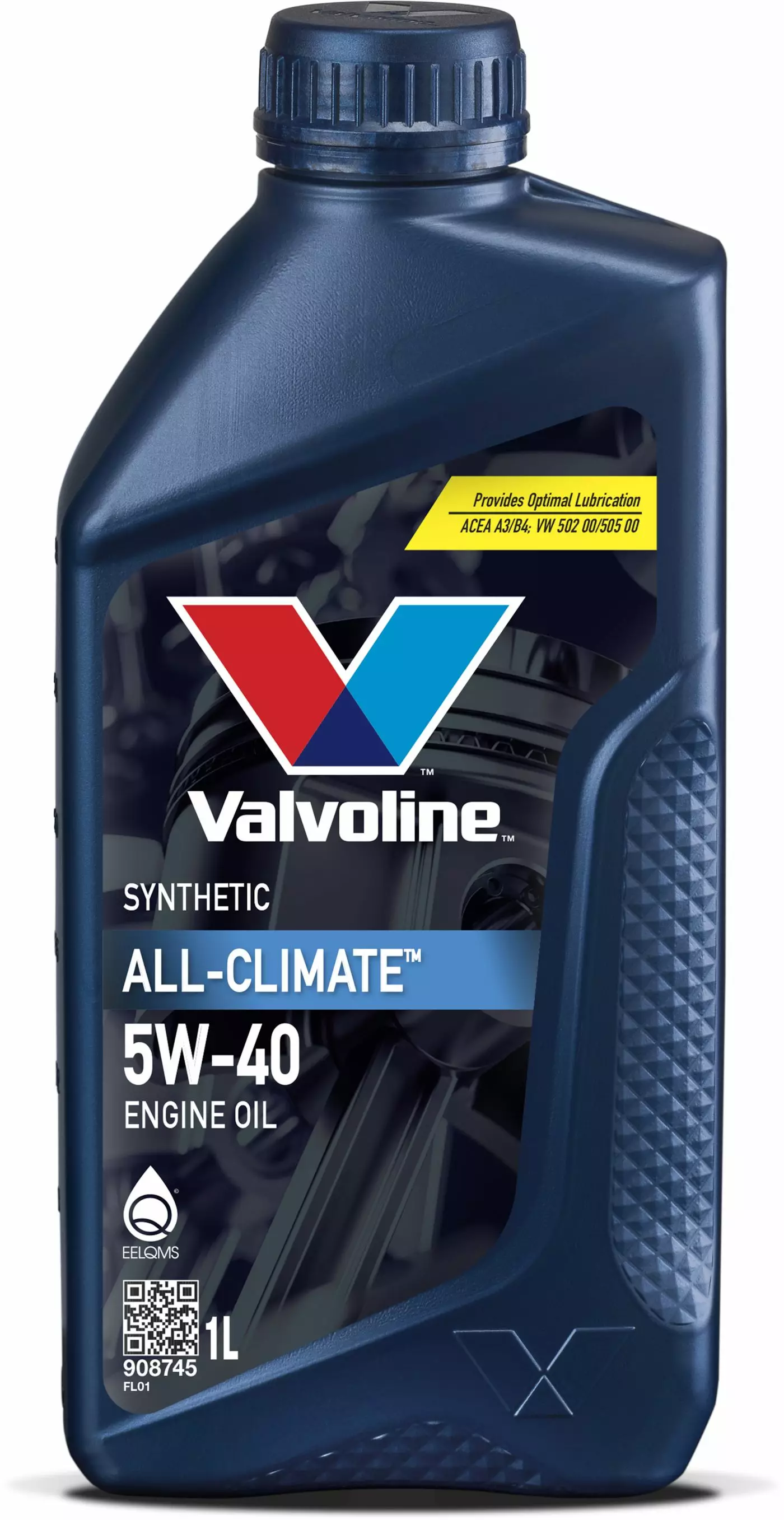 Valvoline All Climate är en högkvalitativ helsyntetisk motorolja som är lämplig för motorer som rekommenderar ACEA A3/B3, A3/B4 eller API SN/CF SAE 5W-40. AllClimate motorolja har utvecklats för året runt-användning i både turbo- och icke-turbomotorer, inklusive bensin-, diesel- och LPG-motorer i personbilar, skåpbilar och lätta lastbilar. AllClimate motoroljor skyddar och smörjer motorn under varierande körförhållanden. De är också lämpliga för användning i trädgårdsmaskiner, motorcyklar utan våtkoppling, båtarnas inombordsmotorer samt industriella apparater som gaffeltruckar. - viskositet: SAE 5W-40; 87 mm²/s (40 °C), 14,2 mm²/s (100 °C) - viskositetsindex: 169 - flampunkt: -45 °C - tändpunkt: 224 °C - ACEA-godkännande: A3/B3, A3/B4 - API-godkännande: SN/CF Prestanda: - GM LL-A-025, LL-B-025 - MB 229.3 - Porsche A40 - Renault RN0700/0710 - VW 50200/50500