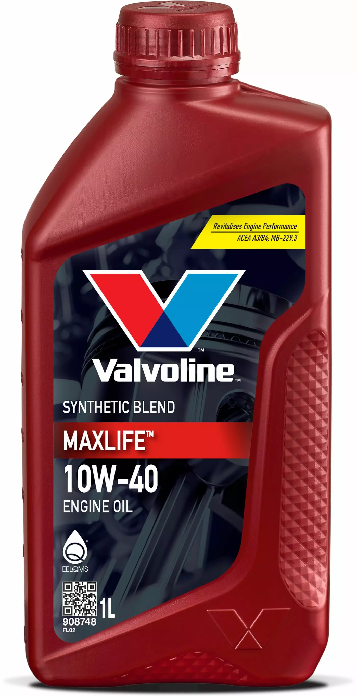 Valvoline Maxlife är en helsyntetisk motorolja som är lämplig för användning i motorer som rekommenderar ACEA A3/B3, A3/B4 eller API SM, SN/CF SAE 10W-40. Oljan överträffar gränserna för rengöringstestet av kolvar enligt ACEA A3/B3 i Volkswagen TDI-motorer. Oljan är utvecklad för bilar och lätta lastbilar med bensin-, diesel- och gasmotorer som har körts mycket. MaxLife är den första motoroljan som är speciellt anpassad för bilar som har kört över 100 000 km. Valvolines avancerade MultiLife™-tillsats minskar oljeutsläpp, avlagringar och slam, samt friktion. Oljan återställer elasticiteten hos motorpackingarna och förhindrar oljeutsläpp. Dessutom förlänger den avancerade slitage- och friktionsreducerande tillsatsen motorlivslängden. Oxidationstillsatser förhindrar viskositetens uppgång och bildandet av föroreningar. MaxLife motorolja har godkännande från den ledande europeiska certifieringsorganet TüV Nord. - Viskositet: SAE 10W-40; 94 mm²/s (40 °C), 13,8 mm²/s (100 °C) - Viskositetsindex: 149 - Gelpunkt: -42 °C - Flampunkt: 224 °C - ACEA-godkännande: A3/B3, A3/B4 - API-godkännande: SM, SN/CF Prestanda: - Fiat 9.55535.D2 - MB 229.3 - PSA B71 2300 - Renault RN 0700, RN 0710 - VW 50200/50500