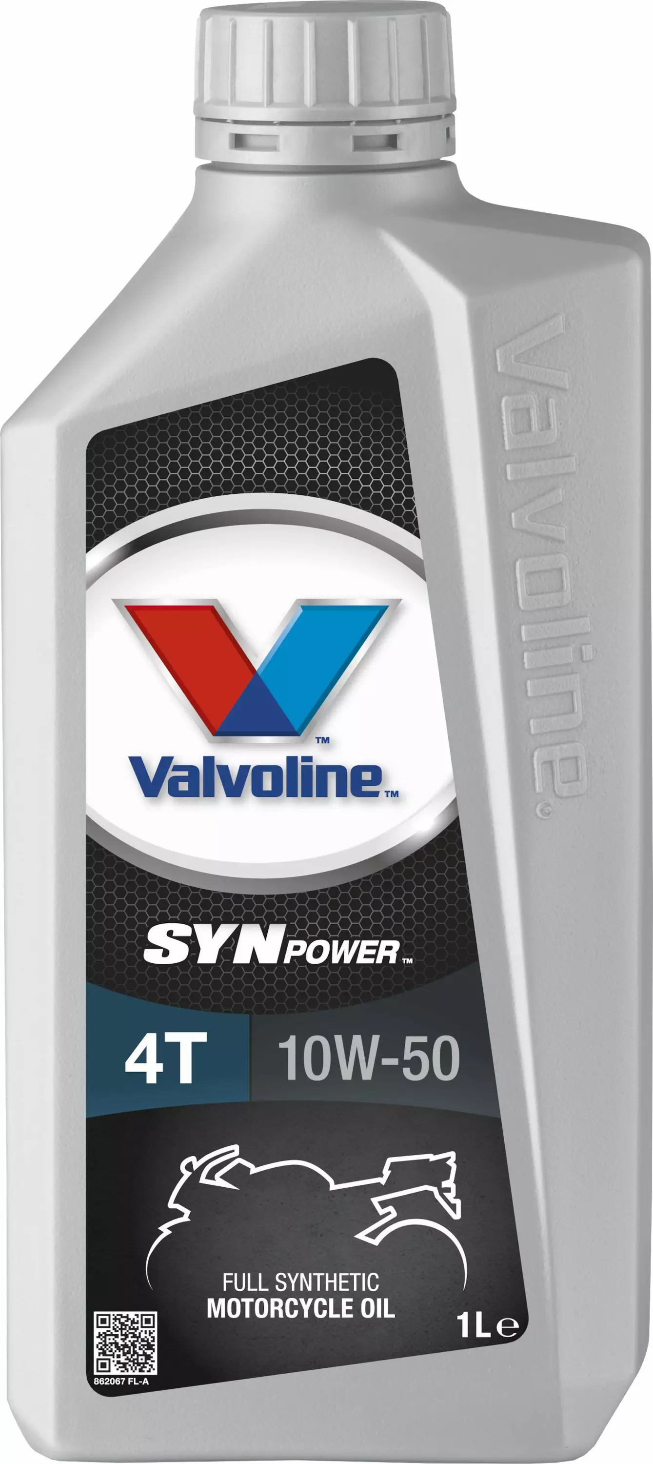Valvoline Synpower 4T är en helsyntetisk, prestationsinriktad motorolja för 4-takts motorcyklar. Den är avsedd för användning i 4-takts motorer enligt specifikationen API SN SAE 10W-50. Oljan är särskilt utvecklad för motorstrukturer i "fuktsump" fyrtakts motorcyklar, där vevhus också fungerar som oljetank. Oljan har optimala friktionsegenskaper, vilket möjliggör maximal effektivitet, smidig växling och adekvat skydd av våtkopplingen. Oljan skyddar effektivt mot slitage och föroreningar tack vare sina utmärkta smörjningsegenskaper i kalla och varma förhållanden. Den möjliggör snabb start även i mycket kalla förhållanden eller efter långa perioder av inaktivitet. - viskositet: SAE 10W-50; 116 mm²/s (40 °C), 17,5 mm²/s (100 °C) - viskositetsindex: 165 - stelningstemperatur: -36 °C - antändningstemperatur: 235 °C - API-godkännande: SN - prestanda: JASO MA, MA2