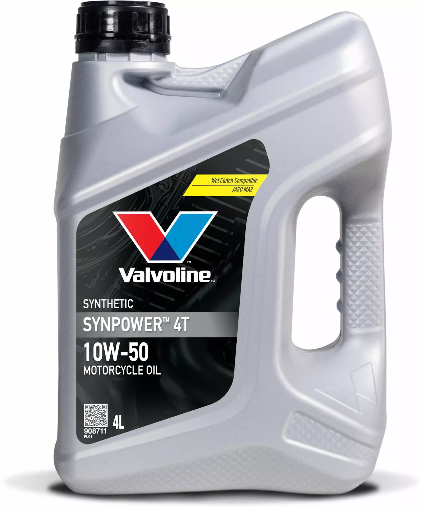 Valvoline Synpower 4T är ett helsyntetiskt, högpresterande motorolja för 4-taktsmotorcyklar. Den är lämplig för användning i 4-taktsmotorer där API SN SAE 10W-50 rekommenderas. Oljan är särskilt utvecklad för "våtklutch"-fyrtaktsmotorcyklars motorstrukturer, där vevhuset även fungerar som oljetank. Oljan har optimala friktionsegenskaper som möjliggör maximal effektivitet, smidig växling och korrekt skydd av våtkopplingen. Oljan skyddar effektivt mot slitage och uppbyggnad av föroreningar, med utmärkta smörjegenskaper både vid kalla och varma temperaturer. Den möjliggör snabb start även i mycket kalla förhållanden eller efter långa stilleståndsperioder. - viskositet: SAE 10W-50; 116 mm²/s (40 °C), 17,5 mm²/s (100 °C)- viskositetindex: 165- grumppunkt: -36 °C- flämpunkt: 235 °C- API-godkännande: SN- prestanda: JASO MA, MA2