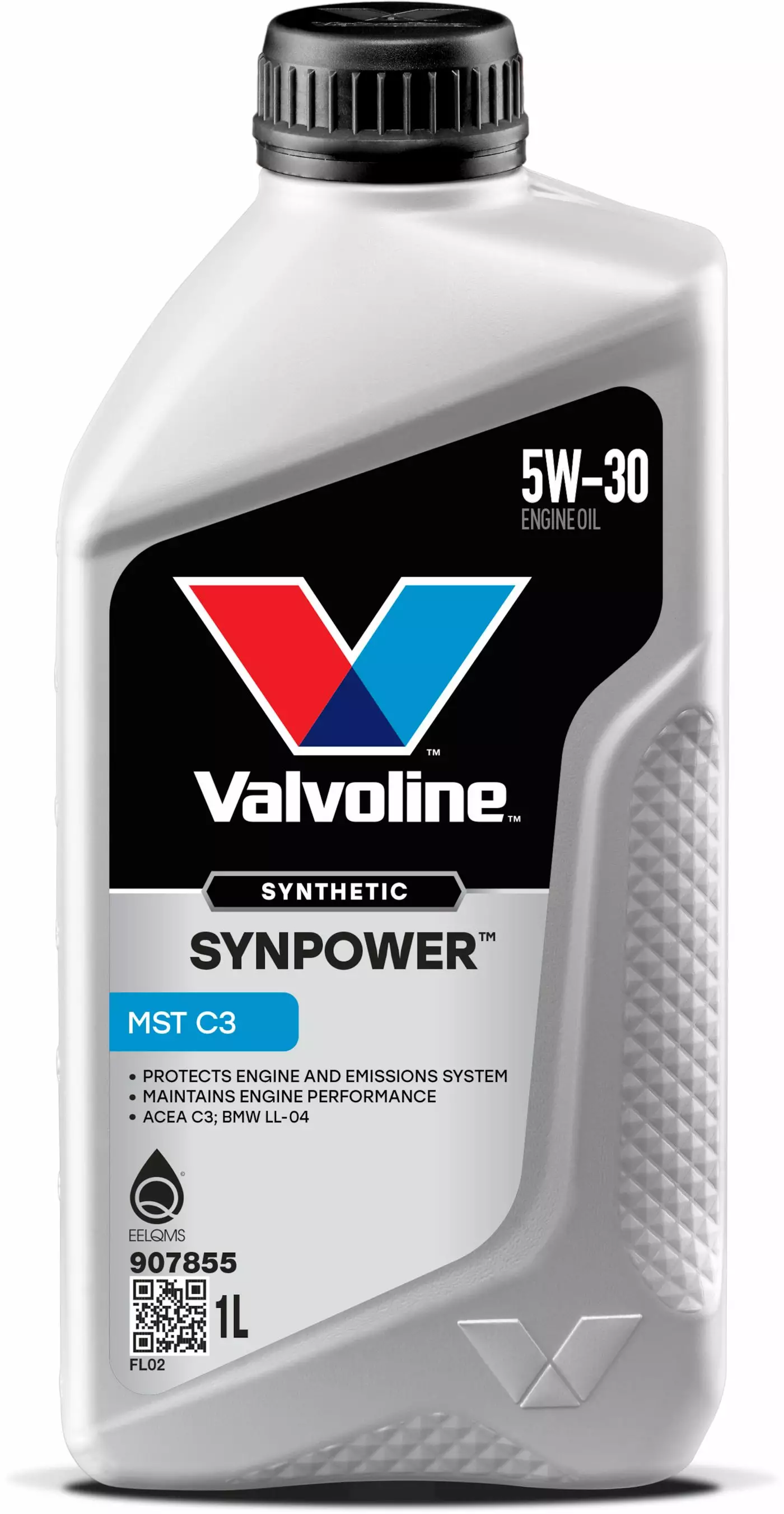 Valvoline Synpower är en helsyntetisk motorolja som lämpar sig för motorer där ACEA C2/C3 eller API SN/CF SAE 5W-30 rekommenderas. Oljan är utvecklad för Euro 4- och 5-motorer som är utrustade med dieselpartikelfilter (DPF) eller trevägs katalysator (TWC). Passar CDI-motorer med efterbehandlingssystem för avgaser och långvariga byteintervall på upp till 30 000 km. Speciellt lämplig för bensin- och dieselmotorer från GM, MB och BMW, med undantag för GM Duramax-dieselmotorer som kräver API CJ-4 motorolja. Oljan är utvecklad för helårsbruk i personbilar och lätta lastbilar med ny teknologi för både bensin- och dieselmotorer. Utvecklingen av SynPower-motoroljor har utnyttjat den senaste tillsatsteknologin och högkvalitativa basoljor för att uppnå önskade egenskaper. - viskositet: SAE 5W-30; 72 mm²/s (40 °C), 12,1 mm²/s (100 °C)- viskositetsindex: 165- flampunkt: -42 °C- tändpunkt: 230 °C- ACEA-godkännande: C2/C3- API-godkännande: SN/CF OEM-godkännande: - BMW LL-04- MB 229.52, 229.51, 229.31- VW 50500/50501 Prestanda: - Fiat 9.55535 S3- GM Dexos 2- Renault RN17