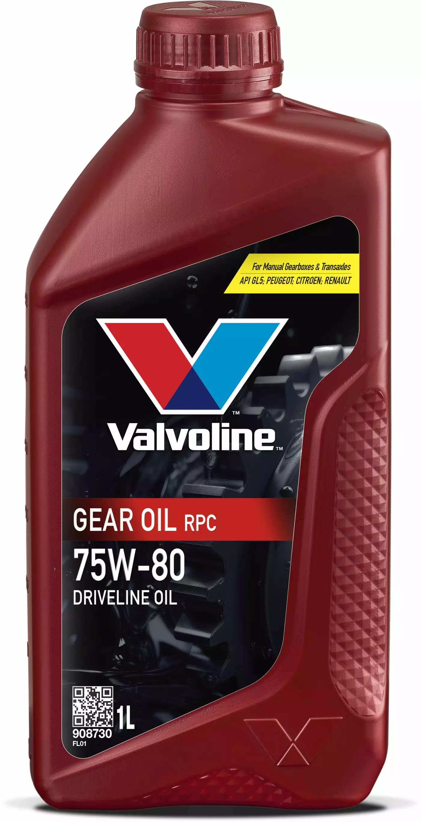 Valvoline Gear Oil RPC är en växel-/drivaxelolja som är lämplig för användning i manuella växellådor och växel-/drivaxlar på personbilar och lätt lastbilar, när API GL-5 SAE 75W-80 rekommenderas. Oljan är särskilt utvecklad för att uppfylla de senaste kraven från Renault, Peugeot och Citroën för manuella växellådor. Oljan är EP-additiviserad. - viscositet: SAE 75W-80; 50 mm²/s (40 °C), 8,7 mm²/s (100 °C) - viskositetsindex: 153 - flampunkt: -39 °C - nötningstemperatur: 180 °C - API-godkännande: GL-5