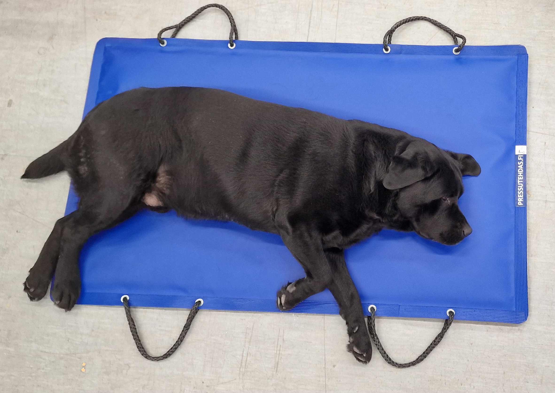 Inhemsk nyckelbandsprodukt: en vadderad vårdmatta för veterinär- eller hemmabruk.Lämplig för exempelvis lyft och transport av ett neddusat djur eller som sovplats för hunden i bilen.Helt vattentät, kan tvättas och desinfekteras på vanligt sätt.Försedd med fyra bärhandtag på sidorna.Mått: 77x125 cm.Tjocklek: 10 mm.Fråga gärna efter andra storlekar för husdjur, t.ex. som transportmatta för får eller kalvar. Bilder visar även labradorer Rane +40 kg och Napu cirka 20 kg på samma 77x125 cm matta.