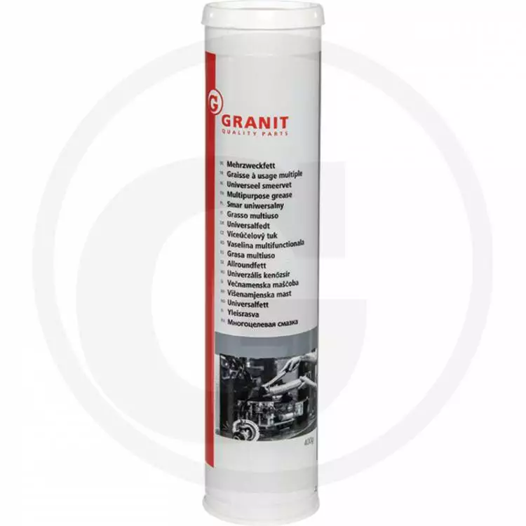 GRANIT multifunktionsfett KL 2 K är ett högkvalitativt, litiumtvålbaserat smörjfett med en naturlig färg, slät konsistens och kortfiberstruktur enligt NLGI klass 2. Produkten har utmärkt skjuvhållfasthet och tack vare KL 2 K-tillsatserna mycket goda rost- och korrosionsskyddande egenskaper. Multifunktionsfettet är designat för olika tillämpningar, vilket gör det lämpligt för många olika användningsområden. - Enligt DIN 51502, typ K2K-30 - Temperaturområde (°C): -30°C ... +120°C (kortvarigt max. +130°C) - Smörjfett avsett för allmän industriell användning, även känt som multifunktionsfett - Passar mycket bra till de flesta applikationer - Används som glid- och rullagerfett vid smörjpunkter för motorfordon, utrustning, maskiner, transportsystem, byggmaskiner osv. - Förtjockningsmedel: Litium-12-hydroxystearat - Dropppunkt: ca 180°C - NLGI-klass: 2 - 400 g