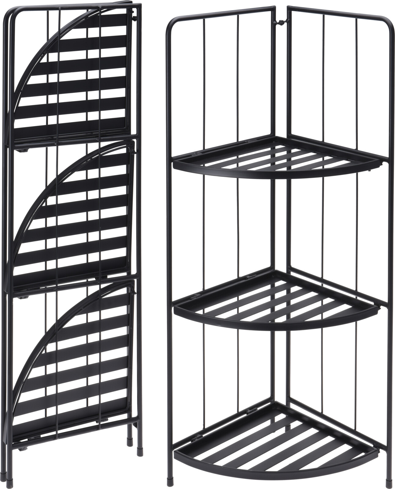 Stilren fällbar hylla med fyra plan i svart metall- praktisk för exempelvis förvaring av växter och krukor samt för förkultivering- höjd: 90 cm- bredd: 33 cm- längd: 46 cm- vikt: 3,3 kg