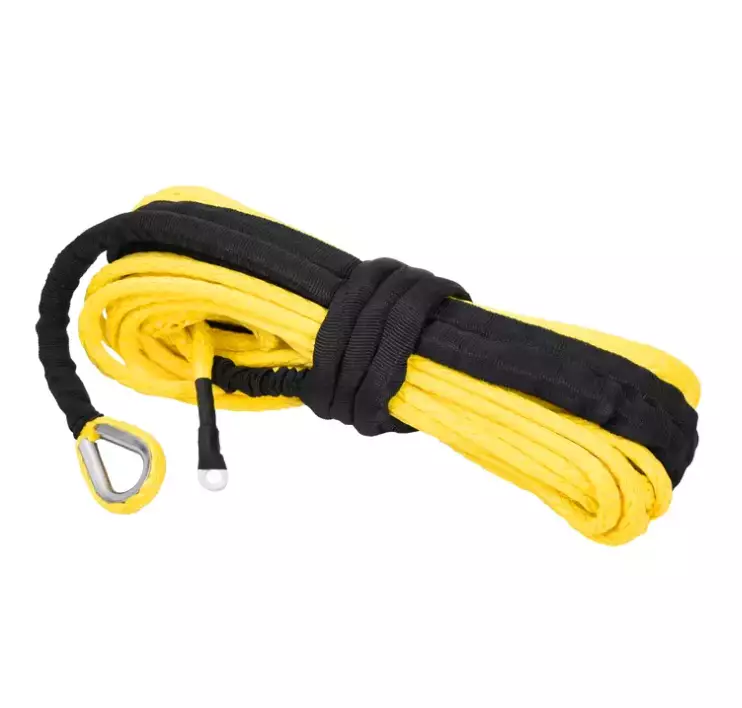 Detta rep är tillverkat av dyneema av typen UHMWPE (Ultra High Molecular Weight Polyethylene). I ena änden av vinskrepet finns en ringkoppling och i den andra en metallögla. Fibret har enastående egenskaper: - Draghållfasthet: UHMWPE-fibern är extremt stark och klarar stora dragbelastningar. Den är upp till fem gånger starkare än stål i samma viktklass. - Slitstyrka: Fibern är mycket slitstark, vilket gör den lämplig för användning som vinskrepen eller transportband. - Kemikaliebeständighet: UHMWPE-fibern är korrosionsbeständig och tål många kemikalier, syror och lösningsmedel. Den behåller sina goda egenskaper även vid kemikalieexponering. - Fuktbeständighet: Fibern absorberar inte fukt, vilket gör att den behåller sin styrka och egenskaper i fuktiga förhållanden. - UV-strålningsbeständighet: UHMWPE-fibern klarar UV-strålning bra och behåller sin styrka och egenskaper i solljus. - Lågt friktionskoefficient: Fibern glider lätt och har ett lågt friktionskoefficient, vilket gör den lämplig för glidande applikationer. - Längd 15 m - Styrka 3000 kg - Tjocklek Ø 6.0 mm - Metallisk fästa öglor