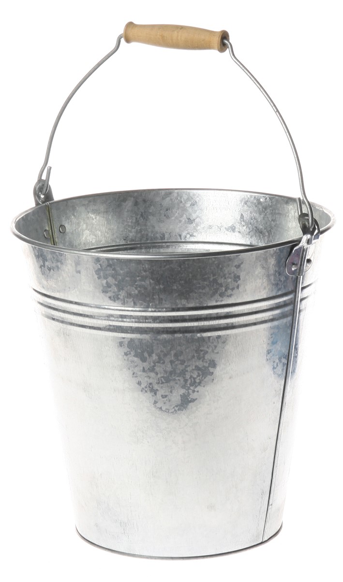 Mångsidig galvaniserad zinkhink med trähandtag - volym 10 liter - materialtjocklek 0,3 mm - mått: 26x29 cm - vikt 500 g